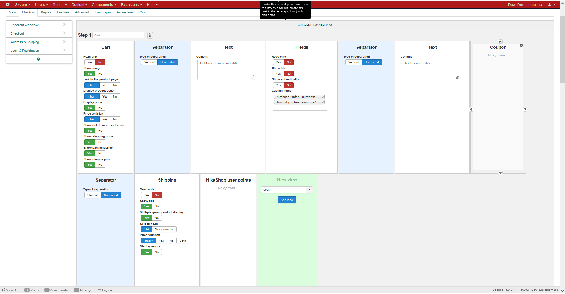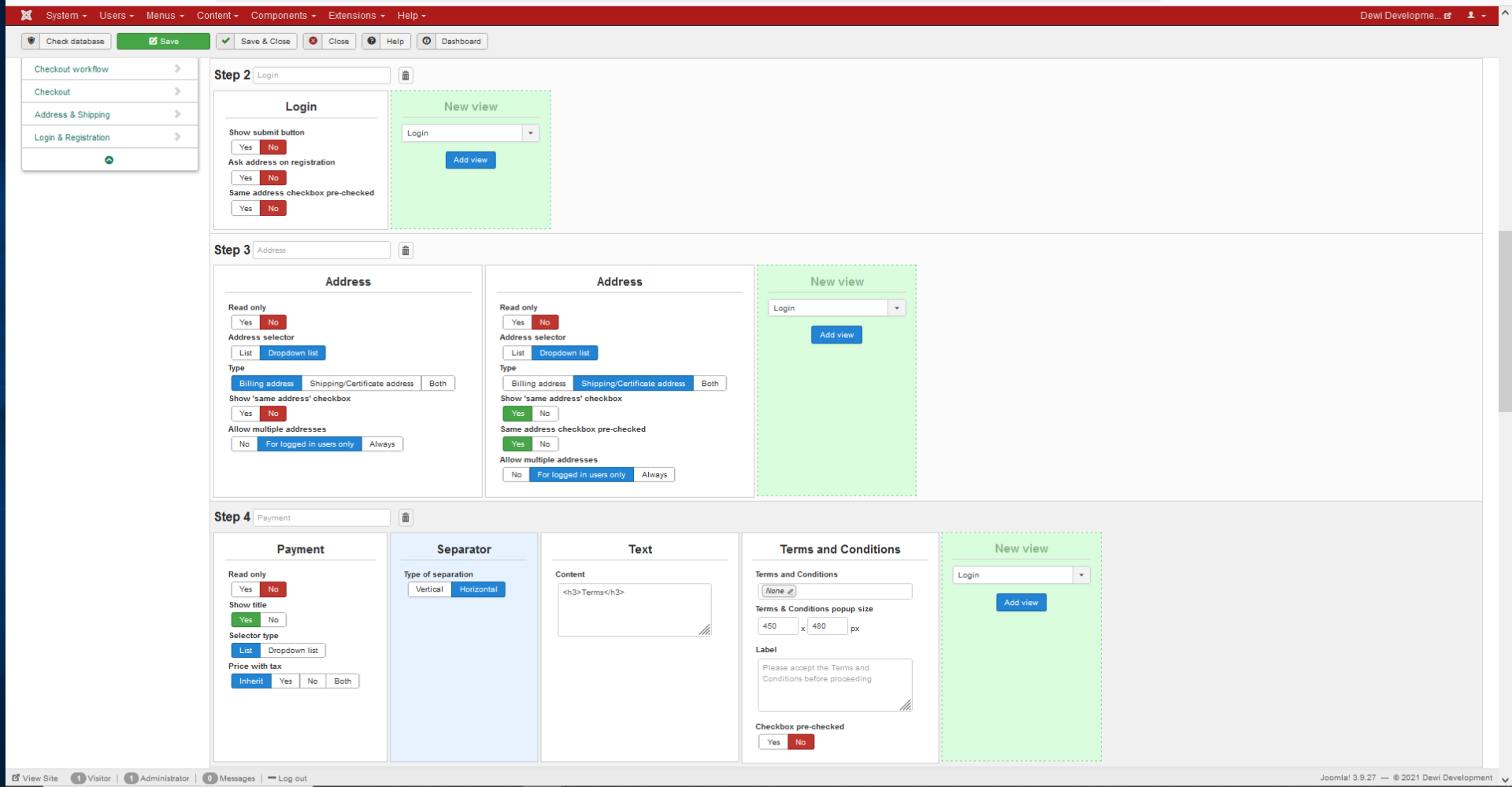 And your relative checkout workflow step (complete settings screenshot).