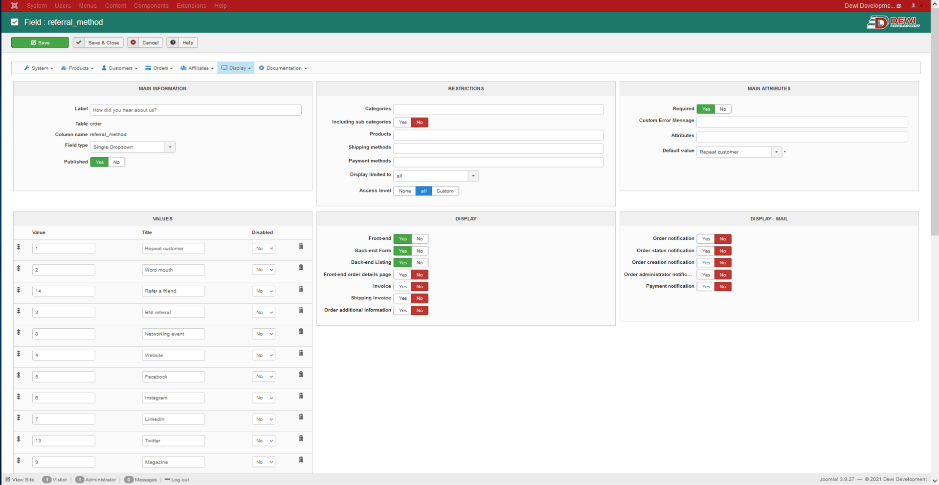 -- Joomla version -- : 3.9.27