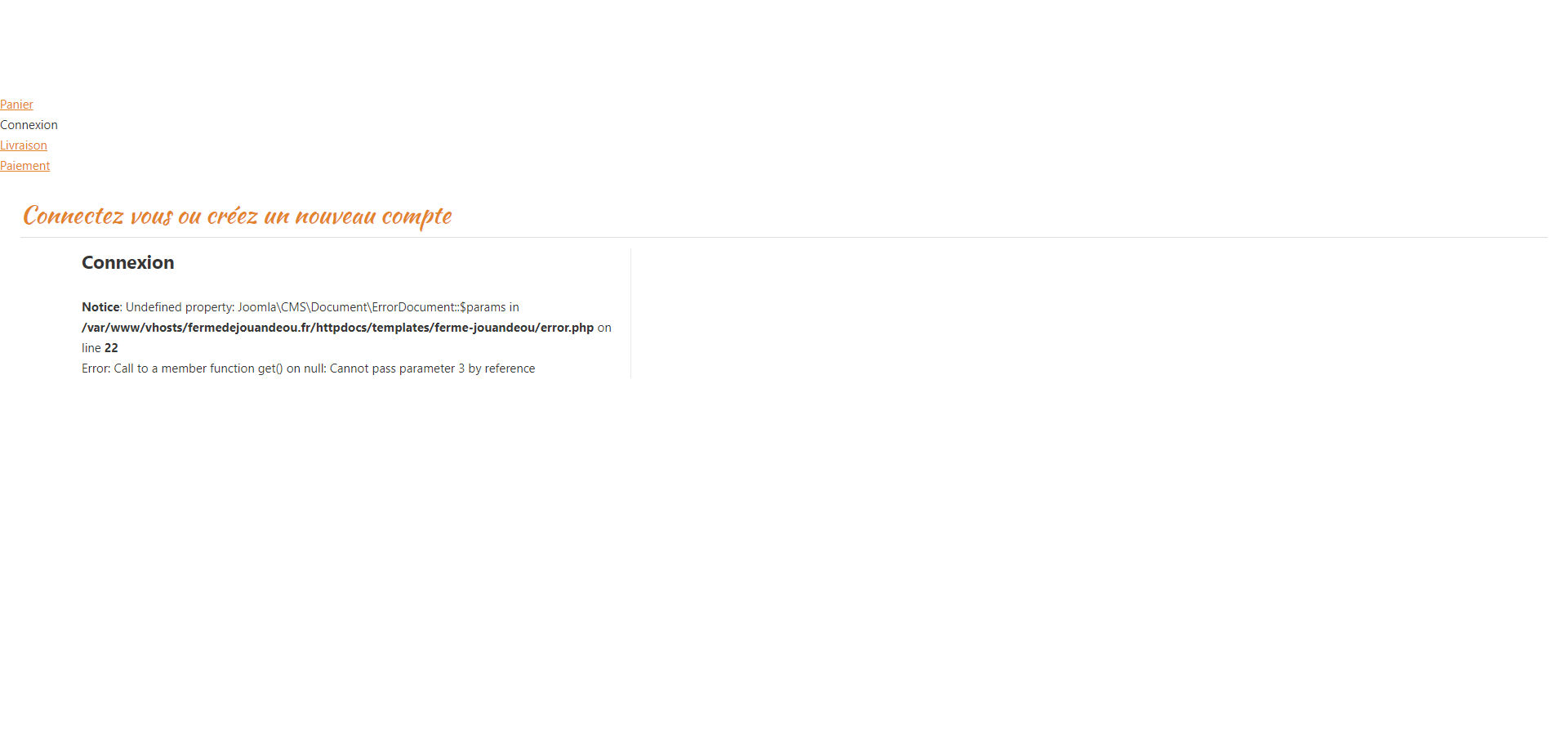Durant l'affichage du passage en caisse, il y a une erreur PHP qui arrête l'affichage de la page.