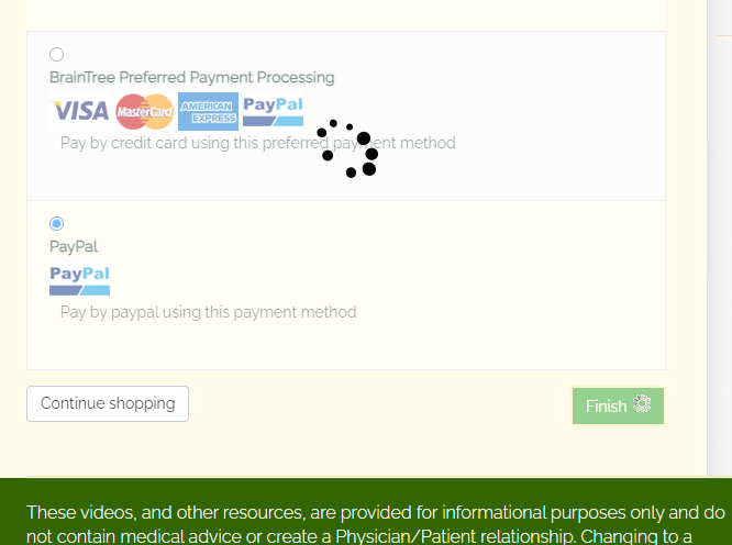 So you mean that when you click on the radio button for the PayPal payment method it works fine. However, when you then click on the "finish" button, you get the whirling icon and it then redisplays the checkout page without any error message.