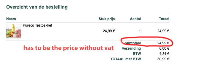 I'd like to see the subtotal price on the confirmation emails without vat.
