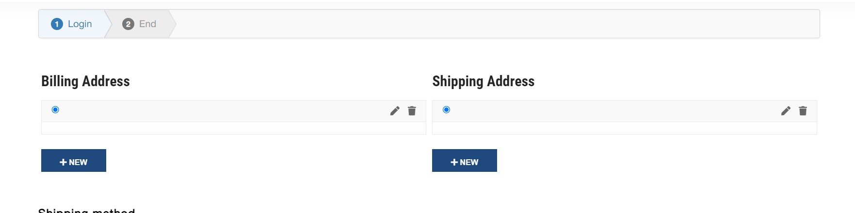 4. It immediately updated the Billing address and Shipping address to a blank selected space, still the same URL as above.