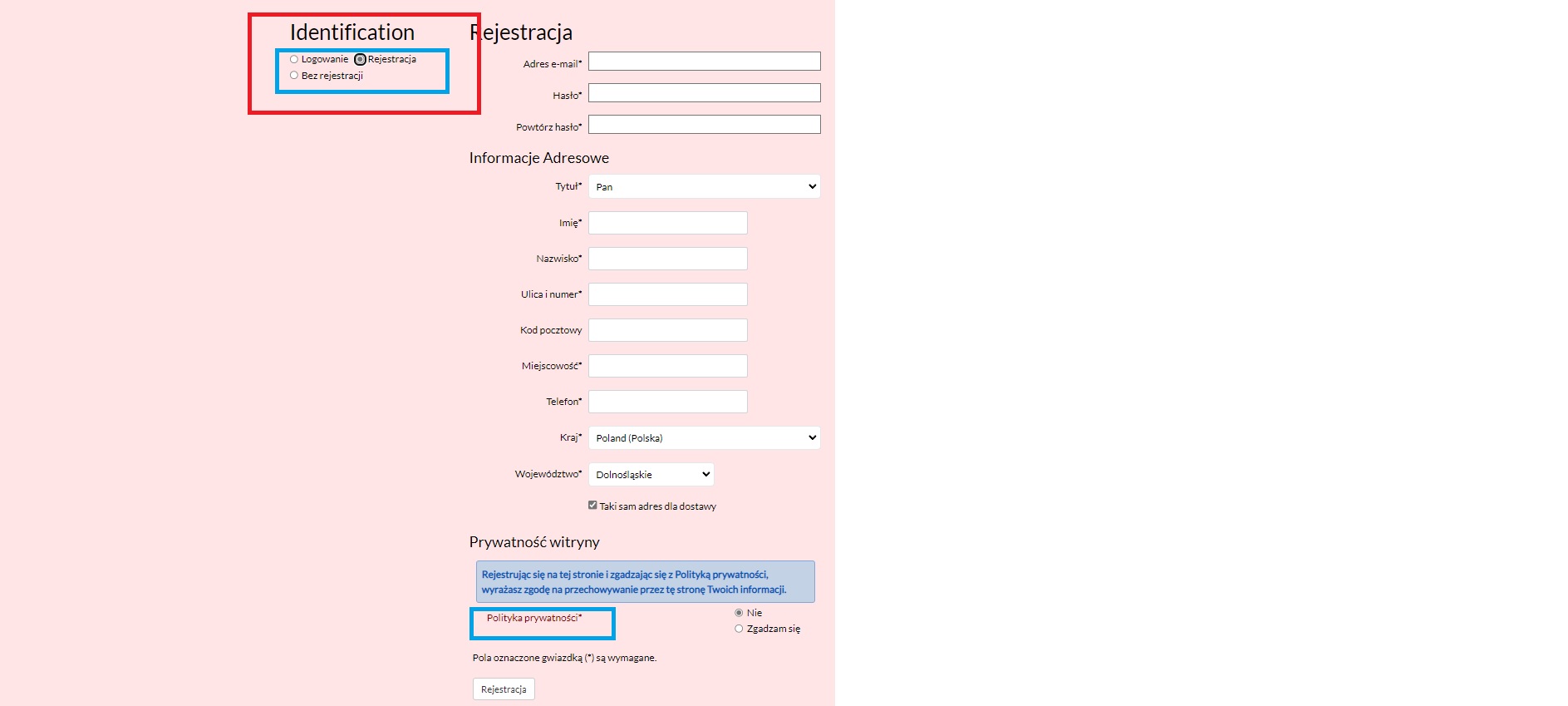 In the store, the policy is also displayed if the customer chooses the option of shopping with registration.
