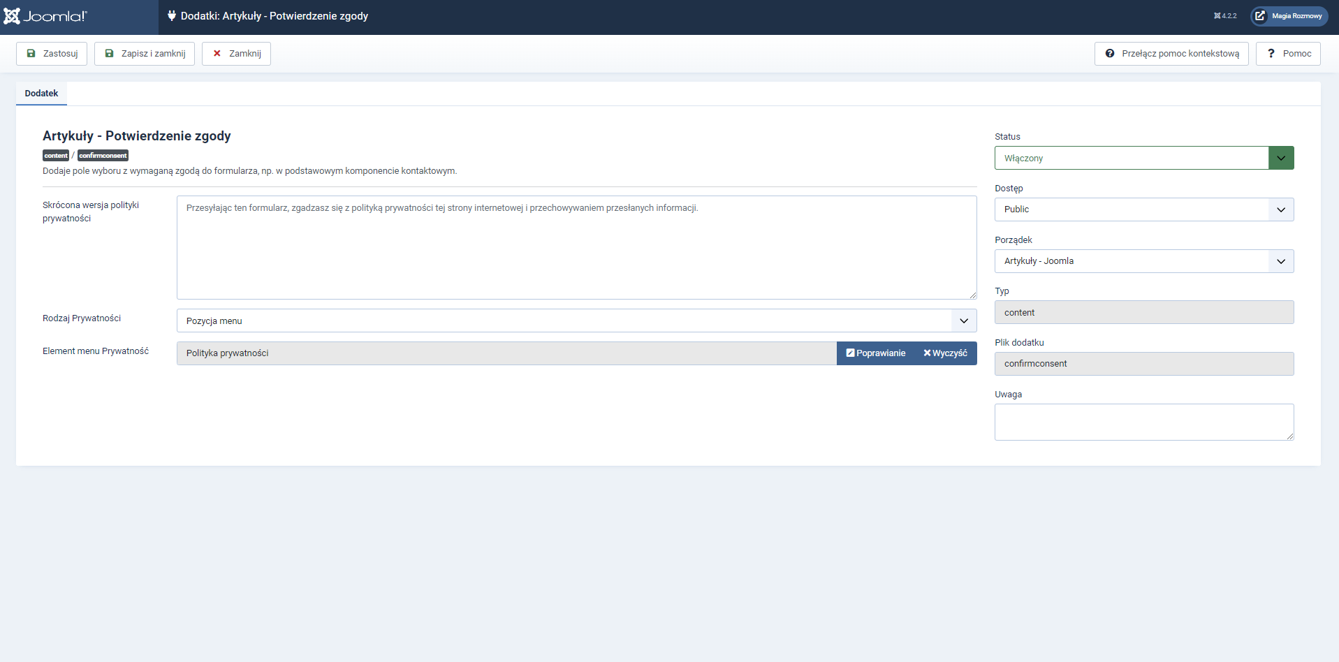 Could you provide a screenshot of the settings of your "Content - Confirm Consent" plugin ?