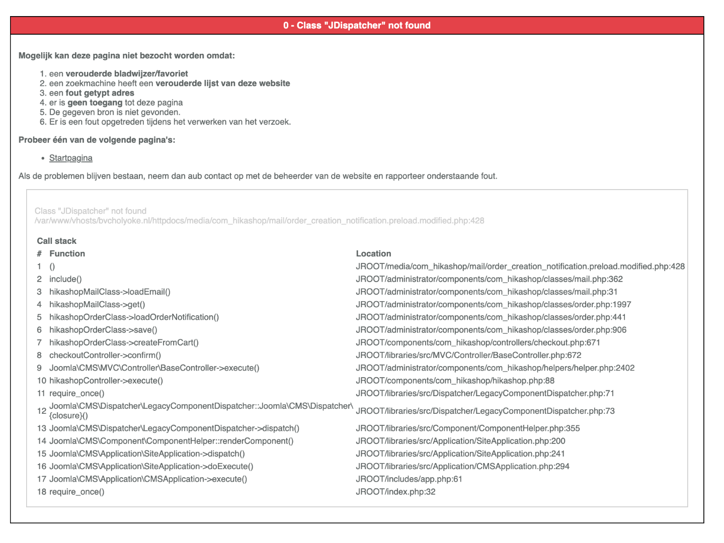 URGENT!!! "0 - Class "JDispatcher" not found" on Checkout page