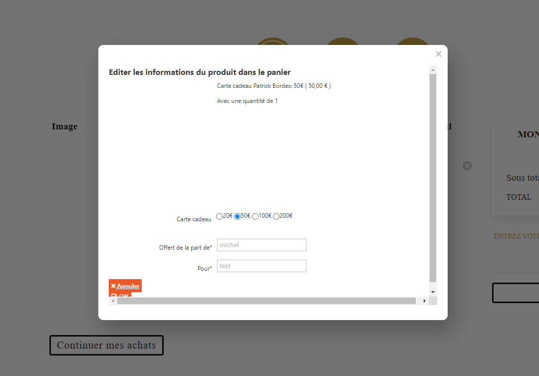 Styliser "Editer les informations du produit dans le panier"
