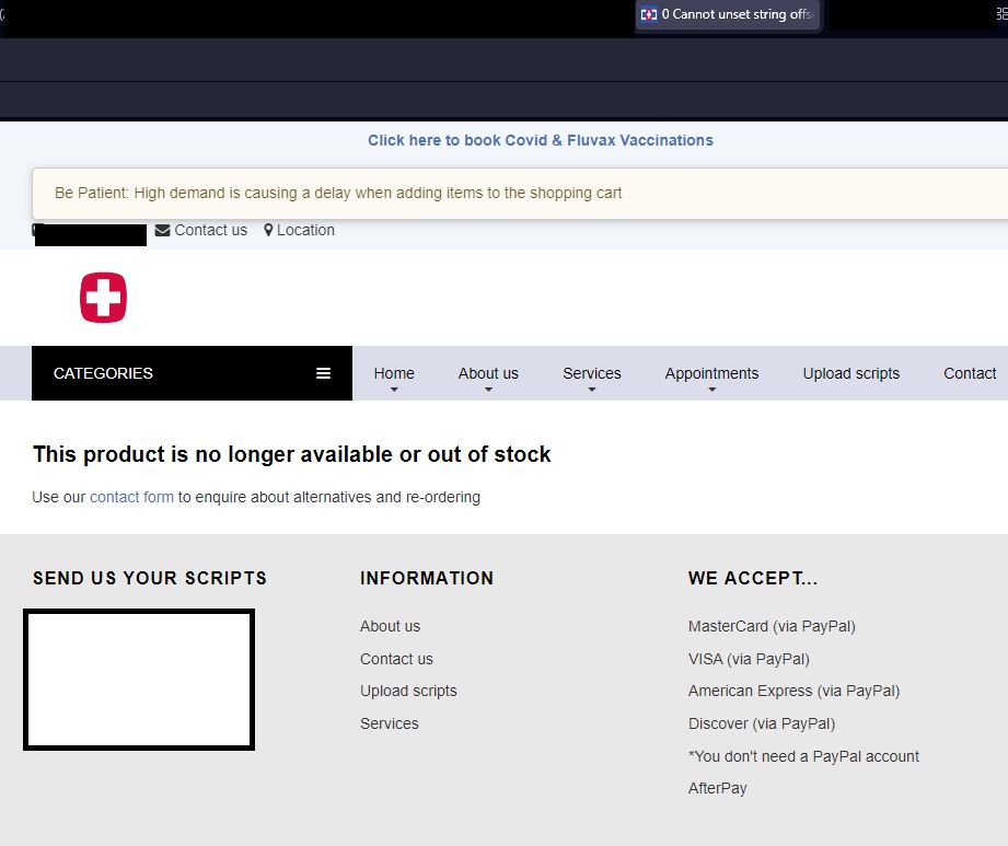 The screenshot seems to come from the URL of a product details page with its product not available.