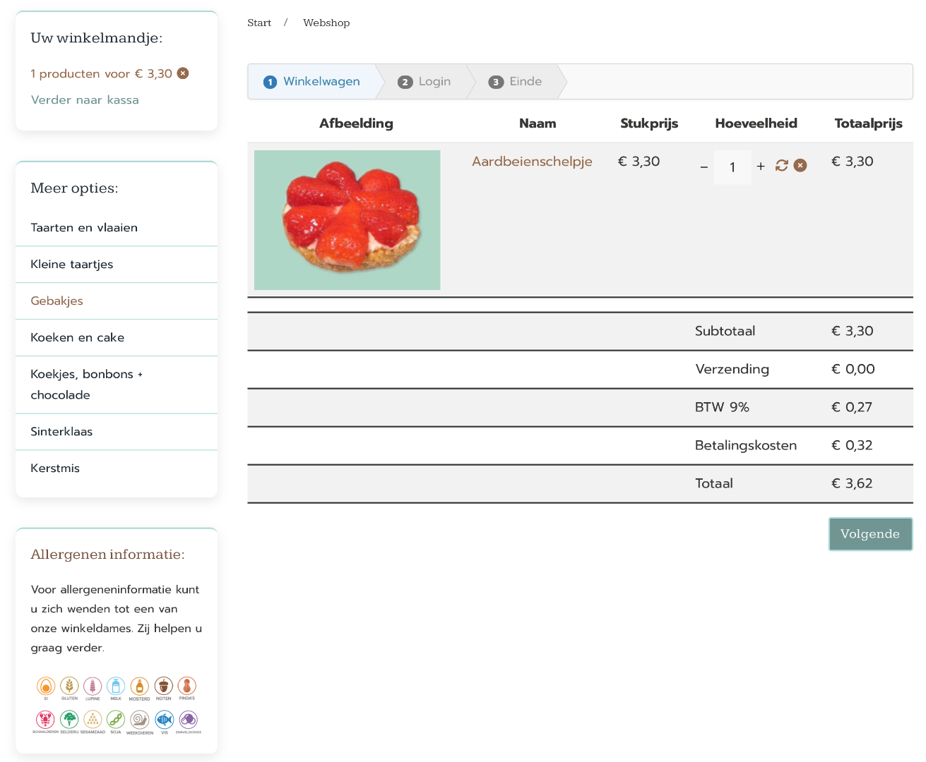 - Shopping cart, pushing the 'Next' button for the second step