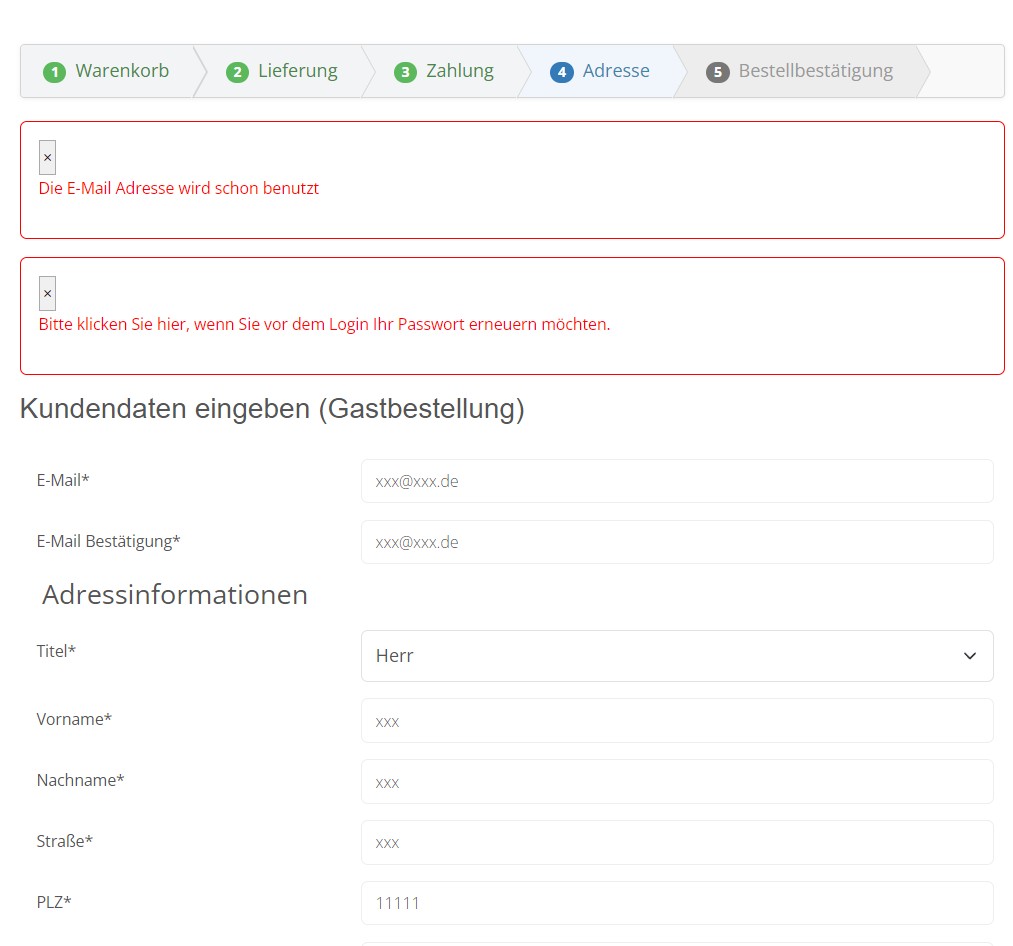 I am using the guest checkout function and therefore do not want to create a customer account. Now, I have tried to place a second order using the same email address and I am receiving an error message saying that my email address has already been used.
