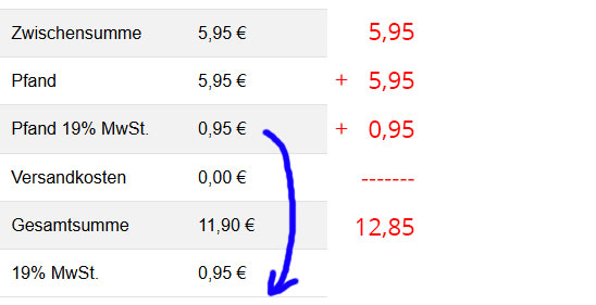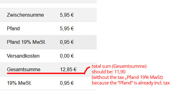 "Pfand 19% Mwst. (already included in the Pfand value above)" or something like that. That way, you make it clearer to the user that they need to disregard this value when summing the values to get the total.