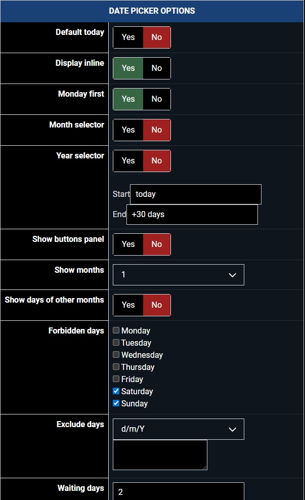 I’m using the Advanced Date Picker and have configured it so that customers should only be able to select a delivery date within the next 30 days (see attached screenshot).