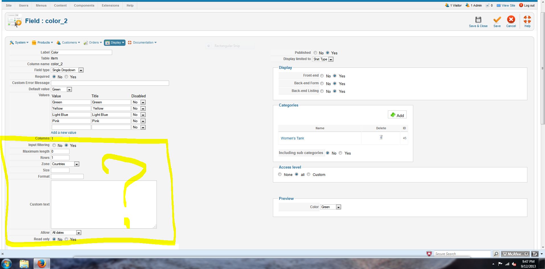 BUT... the big thing is what is all that appears on the left side of the screen? It doesn't do that when I selected "display limited to- Unisex T". It worked just fine. See the jpg I attached.