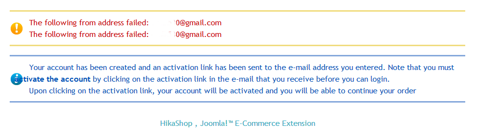 Actualy the failed mail id is mine.....So how to configure it properly and how to deliver an activation link when some one open its inbox ??