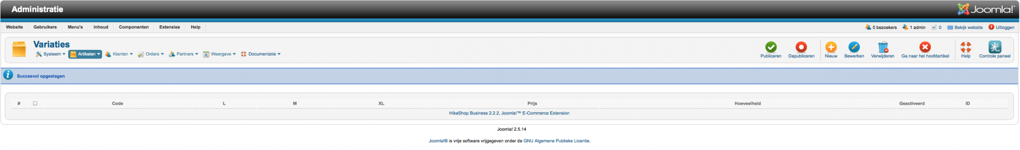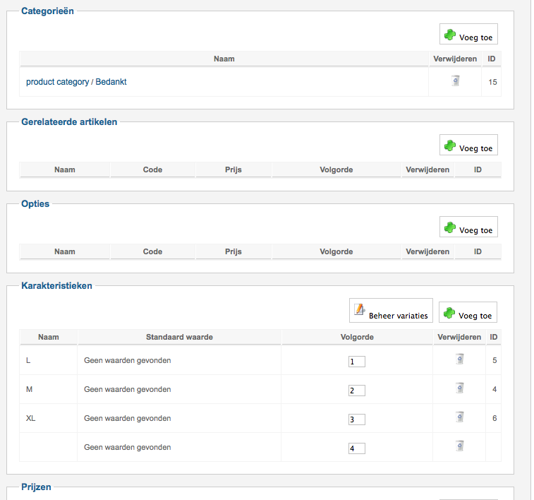 I already have an article + code and also created 3 variations (M-L-XL)