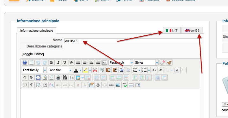 I need to use differente text for the category description (one for english and one for italian), but If I fill the description in IT-it and EN-en tabs, I can't see my translation (see attached image).