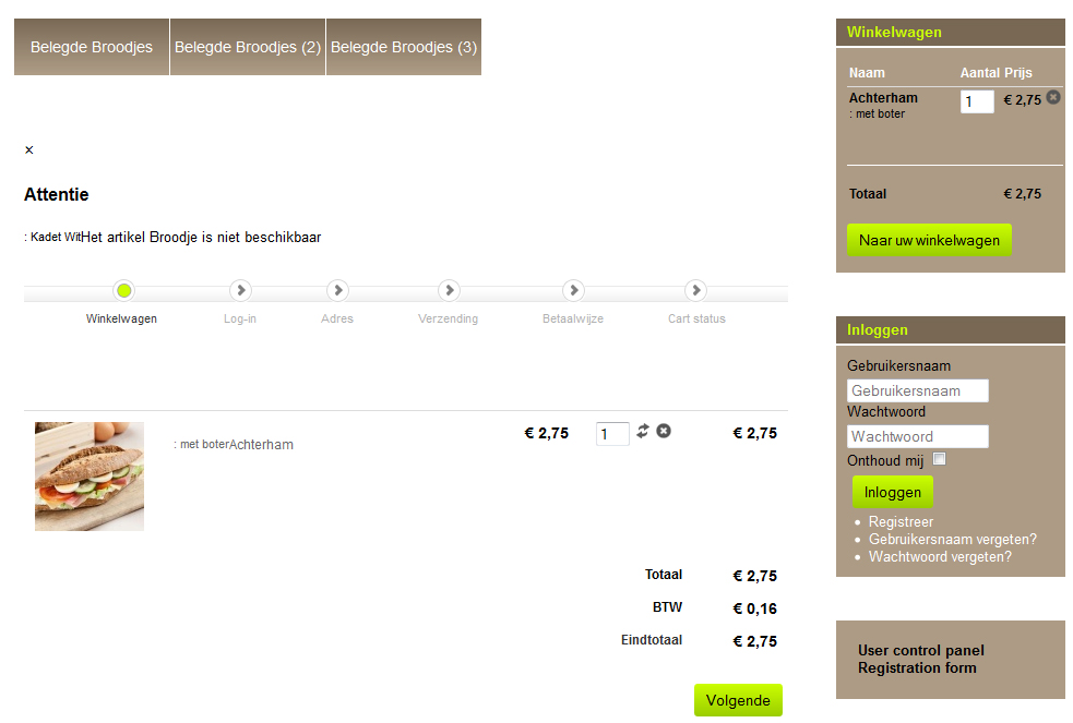 The Normal Price is taken from the default variant, 3 euro's. That is incorrect, should be the mrsp price of 1 euro coming from the main product. The second price says Free (gratis), that is also incorrect because the price is 3 euro's for variant 2 which is the default. And where is my cart button? Also not good! See image below.