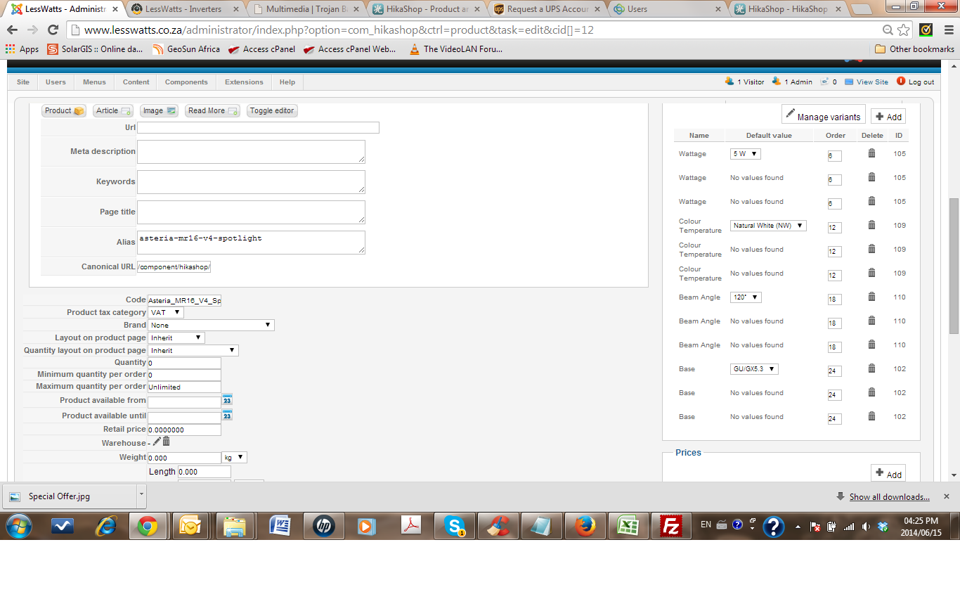 Subsequint to this I enabled the debug mode to see if there were any errors, but now the entire site fails with the following error: 500 - JDatabaseMySQL::query: 1146 - Table 'lesswhkd_jo151.j16_hikashop_variant' doesn't exist SQL=SELECT variant_product_id FROM j16_hikashop_variant WHERE variant_product_id IN (11,426,430,432,434,435,449,451,525,526,528,529,530,531,532,533,534,602,603,604)