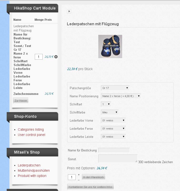 i want that tha customer choose shoes size and color and it shoud not change tha price but shown in the cart and in the bill after