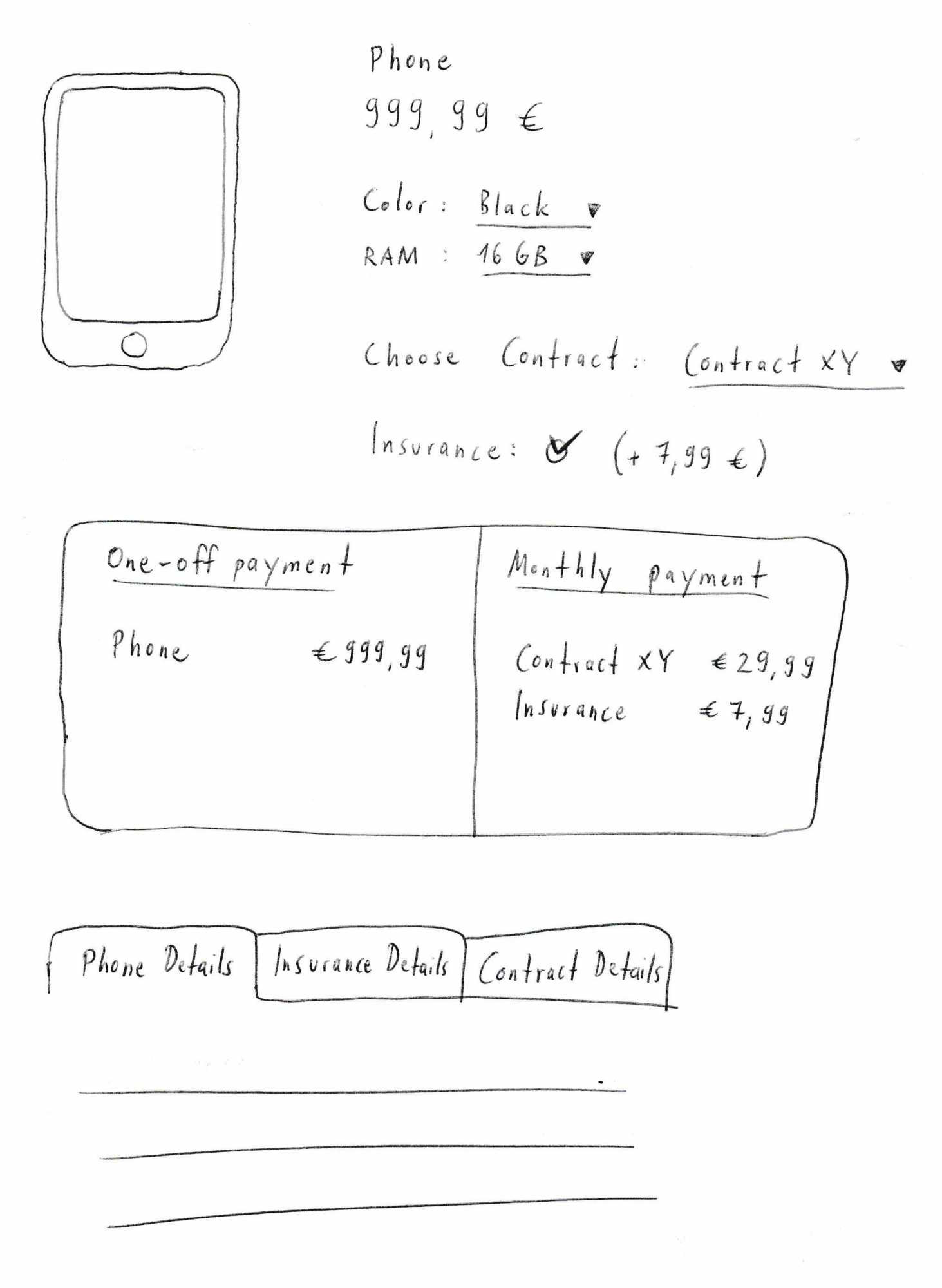 But today I'm desperate because I met an nearly insolvable problem: I want to realize a shop on which we could sell mobilephones and proper contracts.