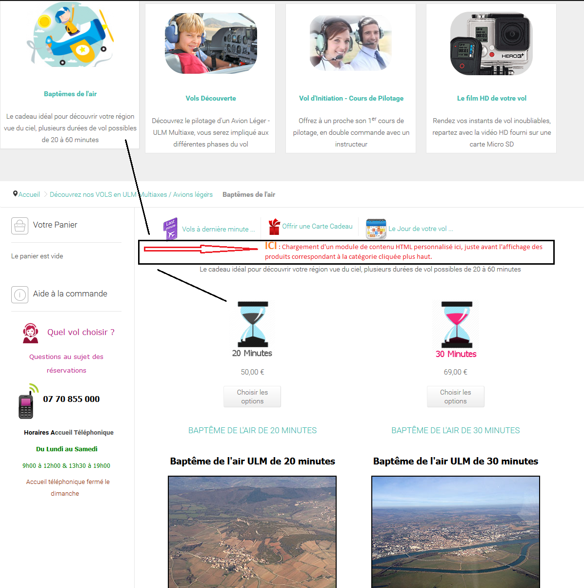 Je voudrai intercaler une module de contenu personnalisé ( avec du texte mis en forme et des images ) juste avant l'affichage des produits :