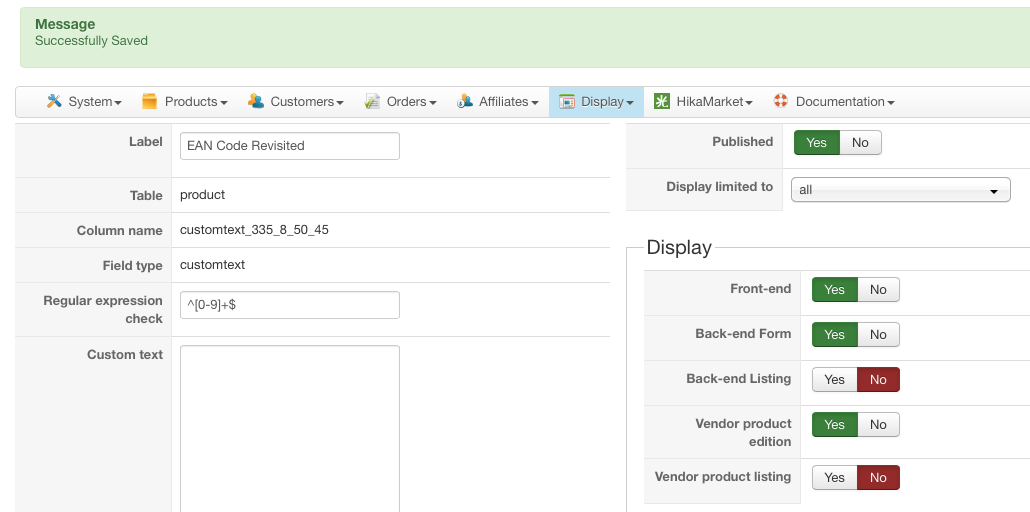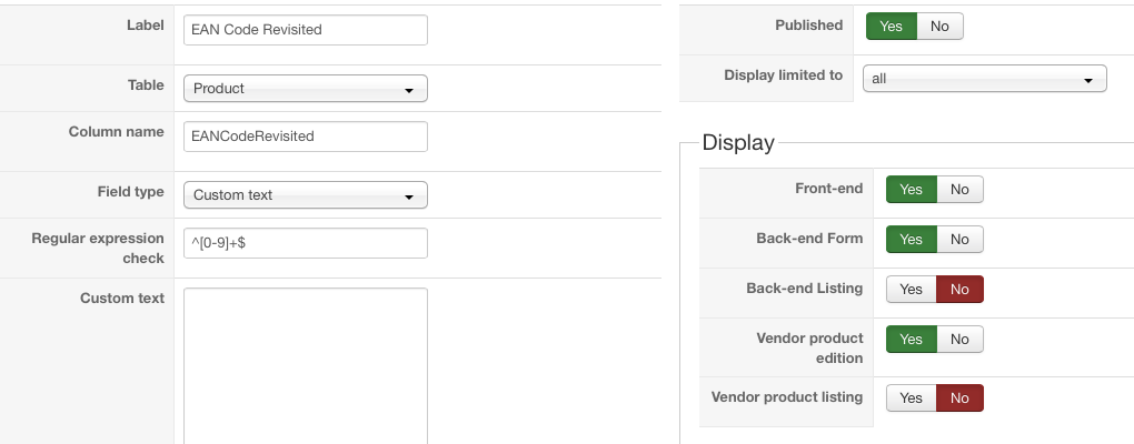 I need to store an EAN code and I don't see a default field for this so I will go to creat a custom field.