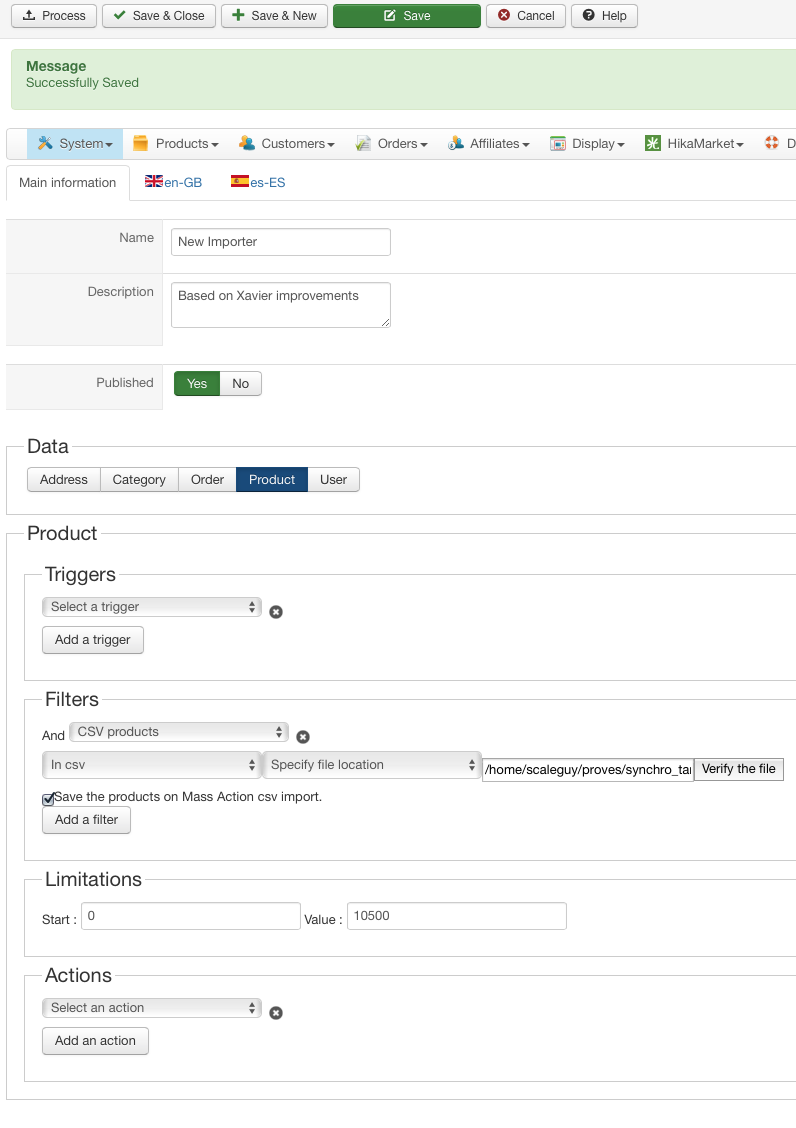 I need to implement last improvements in my real life testing sites before putting them really online. But at this moment don't know what final files must be replaced from the standard HikaShop distribution and what else 'trick' is needed to make products created in a Massaction import as enabling / disabling product_id in the product table does not look like (in my case) enough to make it work.