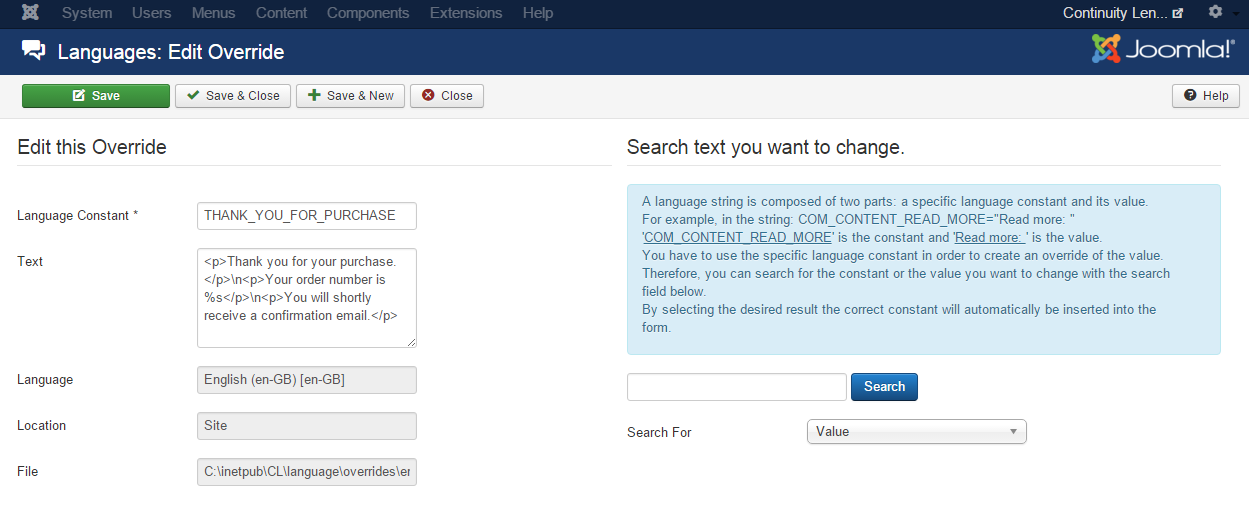 We would like to include the order number in this message. We have already created a language override (THANK_YOU_FOR_PURCHASE), adding in extra information to say the customer will receive a confirmation email shortly.