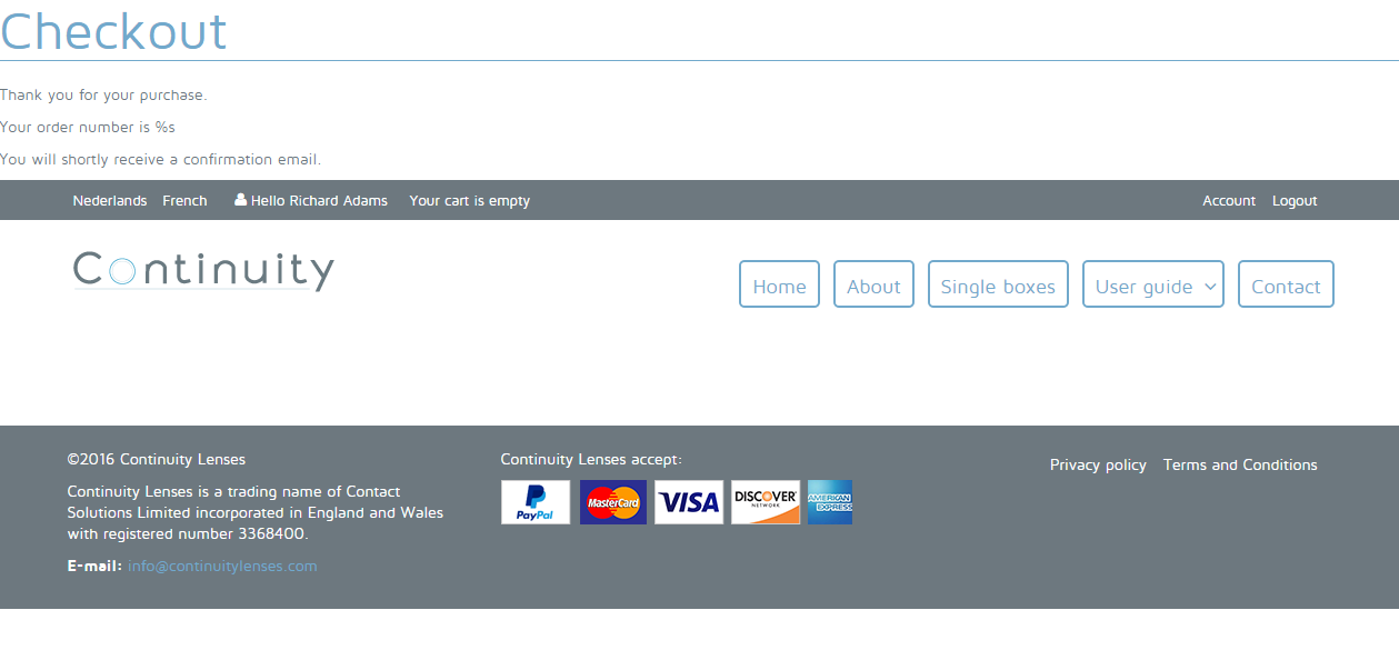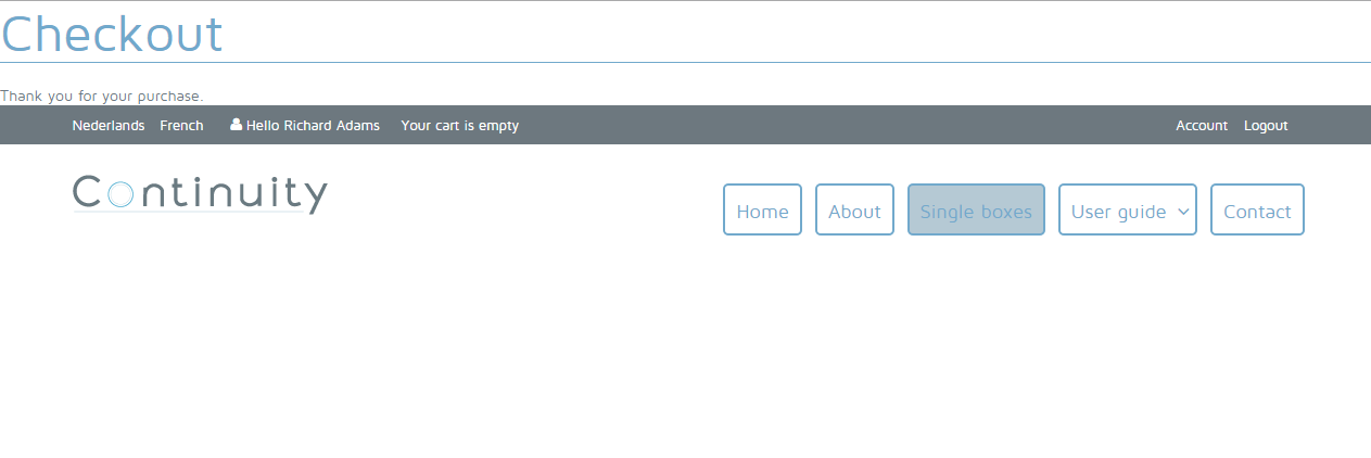 Once a customer has placed an order, they receive a system message thanking them for their purchase.