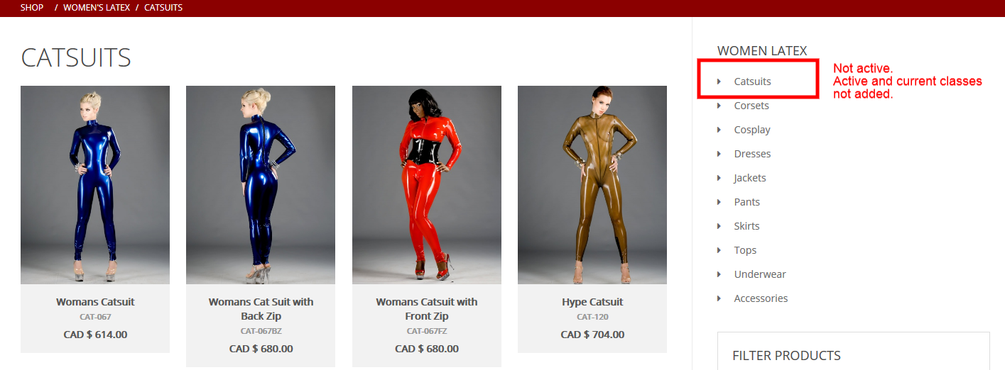 I checked the category > listing_list.php, and I can see the code for the "active current" class , but it doesn't seem to get added to the active link.