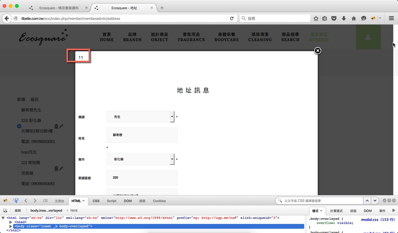 Now,all popup window header will show "11" , including agreement page and edit user address page.