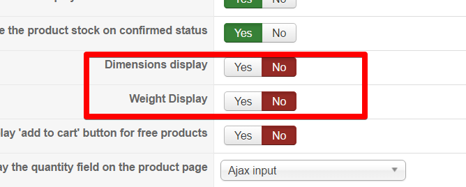 Frontend issue - Add a new product - Dimensions display + Weight Display are always visible. Display Settings for both are to 'No'.