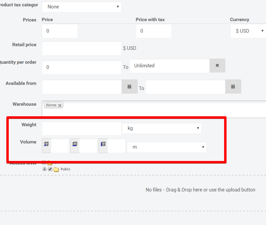 Frontend issue - Add a new product - Dimensions display + Weight Display