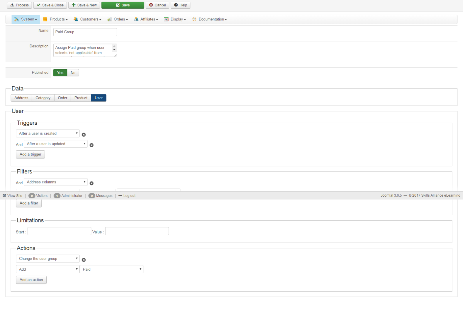 -- Joomla version -- : 3.6.5