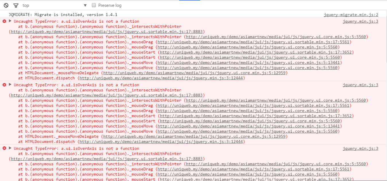 Hi, this is the screen shot of js console when i trying to drag the image..