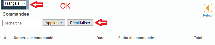 Cela se produit uniquement à cet endroit. Si je vais dans "Commandes" étrangement les boutons "Appliquer" et Réinitialiser" sont carré