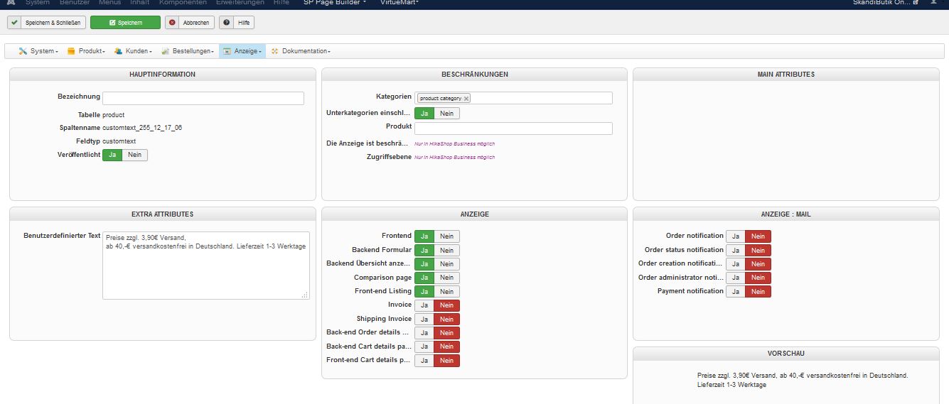 3. You can create custom fields of the table "product" via the menu Display>Custom fields. These can be filled or selected on the product edition page and then displayed on the product page automatically for you. You can even use img html tags in the values of the custom fields so that you can have color icons if need be.