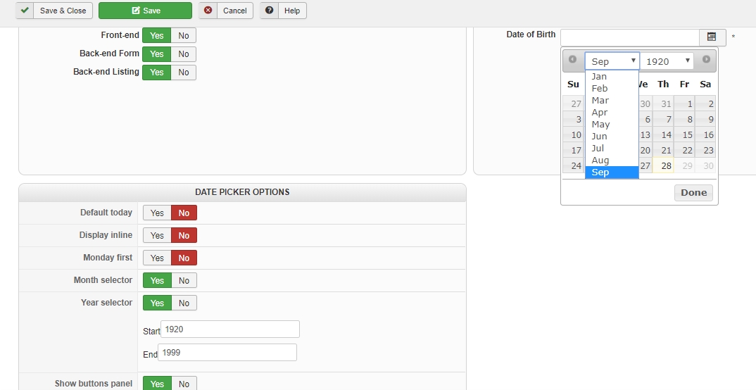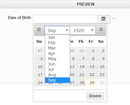 The important thing is to set the dates to only show past dates, and set the start year to 1920 and end year 1999.