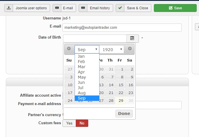 Use the Test Calendar, edit hikashop / User, or use the new user registration form and select the DOB field opening the calendar and you will see in all places that October is missing from the choices.