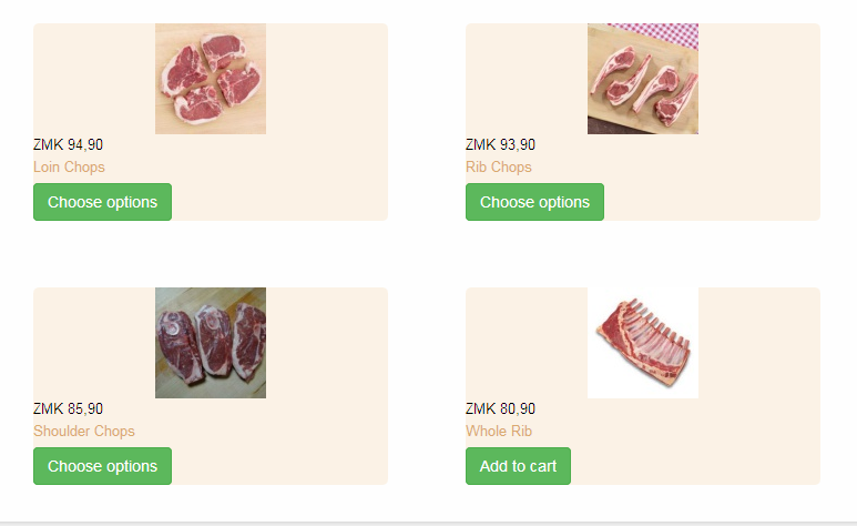 We sell meat. So on smaller cuts I have characteristics, then added as variants on these cuts to enable the buyer to choose 0.5kg, 0.75kg, 1kg, etc. packs. This works very well. On the other hand I have bigger cuts, like whole ribs (in the picture) that is sold as individual units, but priced per kg. The trick is that I need to list a price range for this item. Let's say one rib can weigh anything between 0.8 and 1.2kg, and that it is priced at $10 / kg, how do I display that the item will cost between $8 (minimum) and $12 (maximum.)