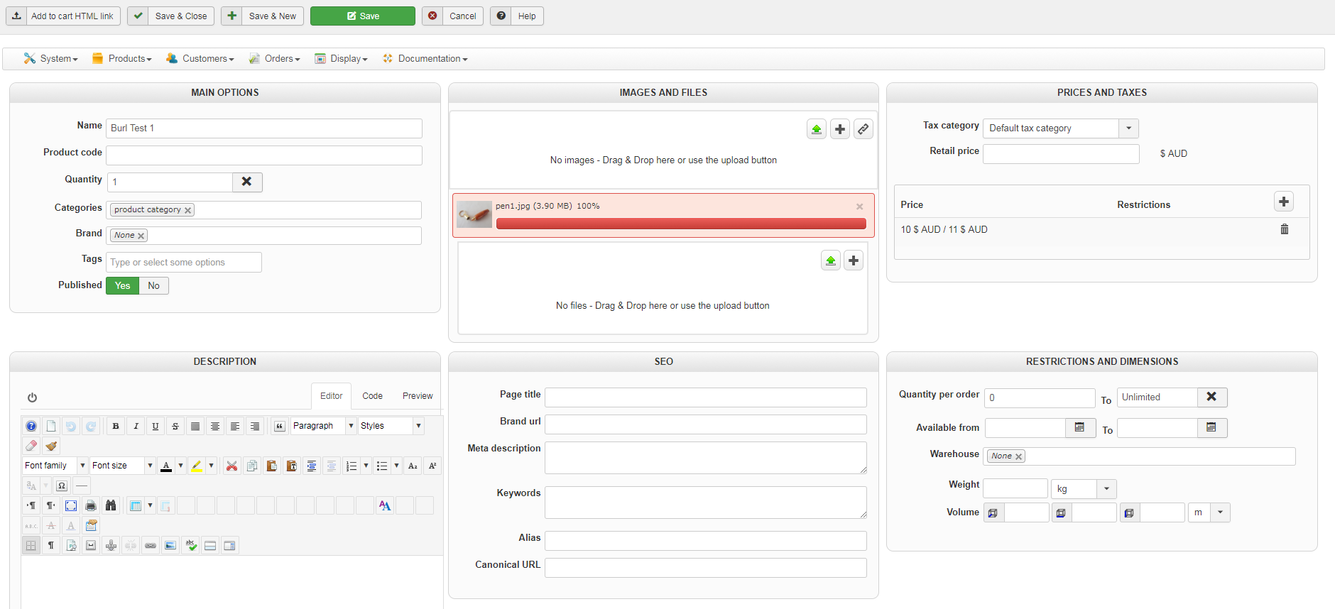 I am unable to upload / save images to the product page of a size around 3Mb.