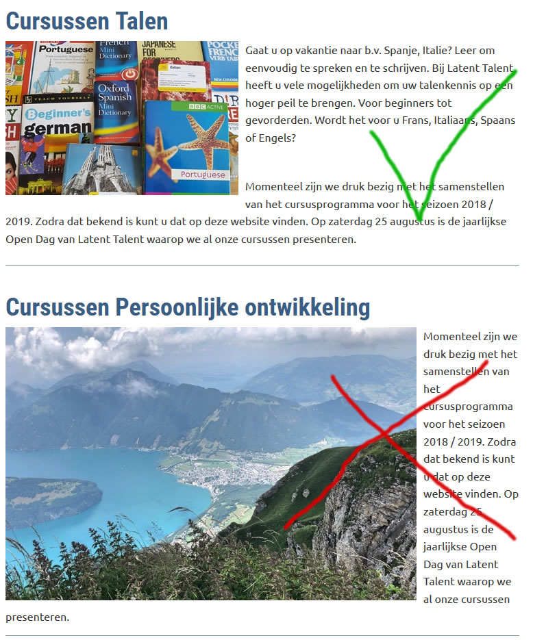 Your image is a different problem and it's because the image for "excursies" do not have the same ratio than the other, so the resized image do not have the same height and it results that display.