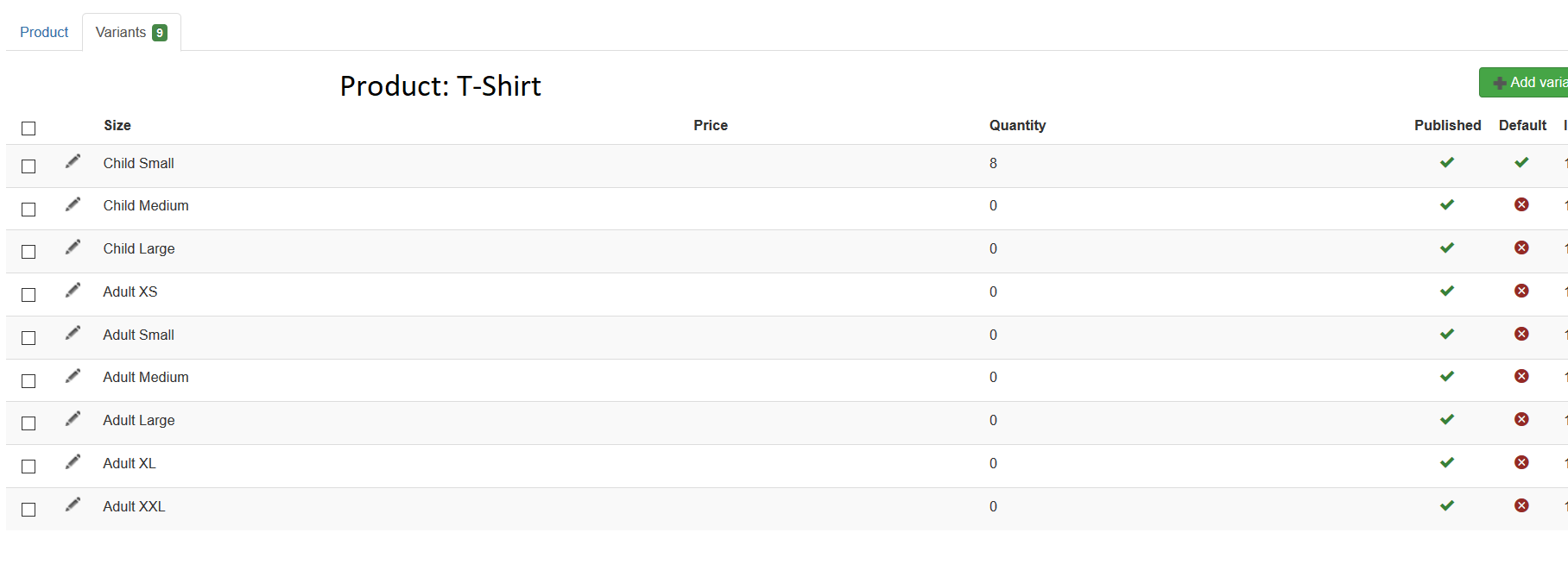 Product: T-shirts has 9 variants