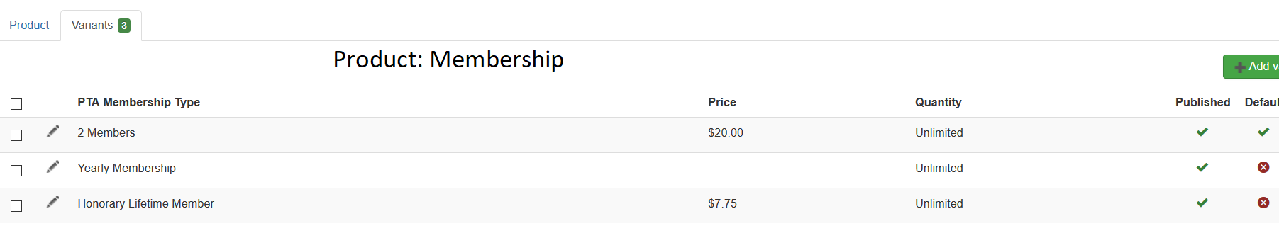 Product: Membership has 3 variants