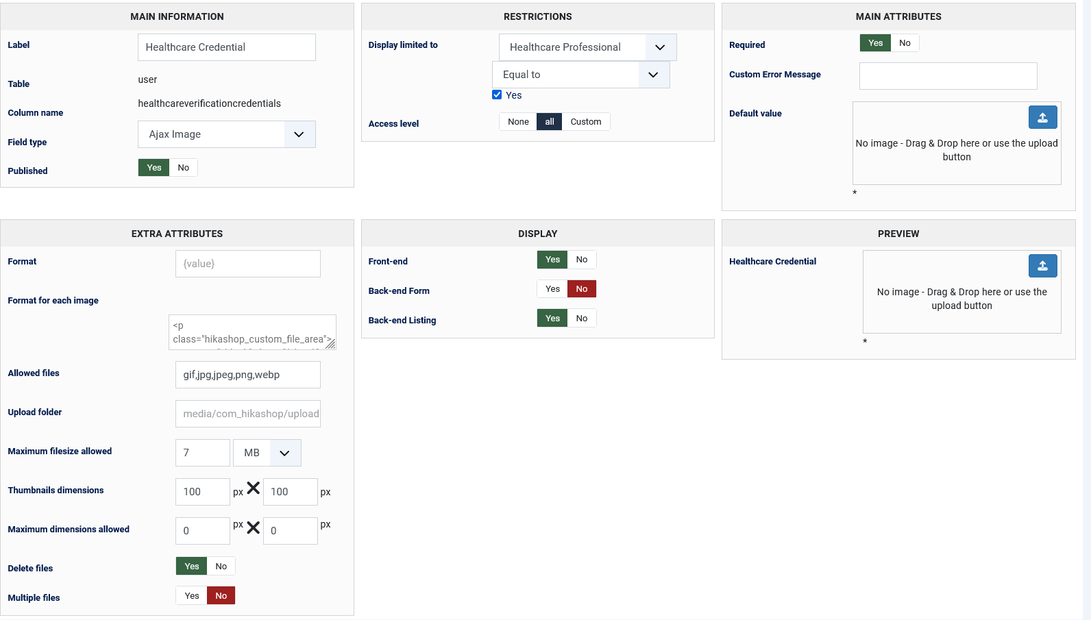 Related usability issues include that if the image size limit is set, it allows the upload and displays a green image bar, but no error occurs until after submission. This gives the false impression (especially that green bar) that the images were of good quality. I know they receive an upload file that is larger than the maximum upload size after they submit, but it sends a confusing message, especially on mobile. Even added helper text, but people are still getting frustrated. Ideally, there should be a check before upload with Ajax and display an error message similar to the file type error, and at the very least, not a green bar, as it gives the wrong impression.