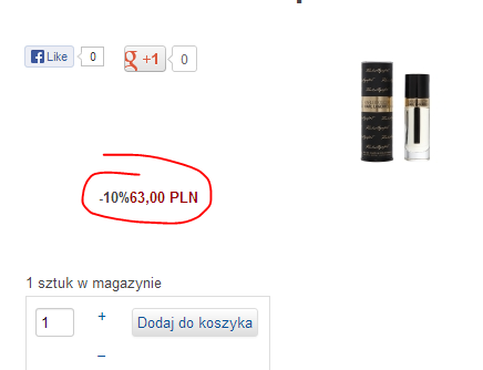 My problem is in way that hikashop is showing discount on product page. My price is 70PLN and I've set a discount -10% for everything as a welcome gift. On the product page, first shows discount value and then price after discount.
