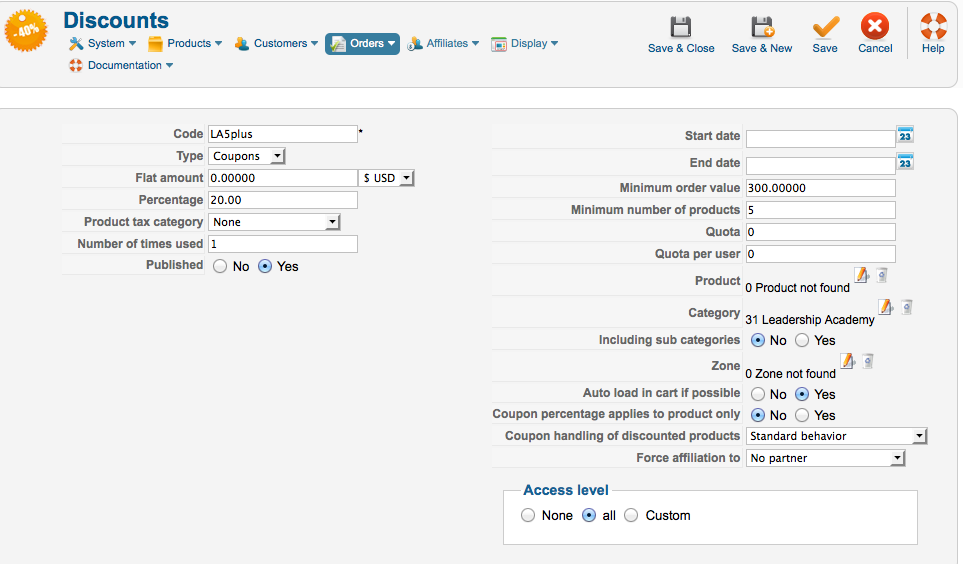 I have a simple discount set up to give a 20% discount when a customer orders 5 items or more totaling $300 or more. It works absolutely fine in testing. However, I recently had a customer place an order of 5 items totaling $300, and the discount they received was $108 when it should have only been $60 for a final total of $240. But somehow the discount is being applied twice. ($300 less 20% = $240) less 20% = $192. I tested it again, and it's still doing it correctly, but somehow in the checkout/process the discount is being applied a second time, and obviously that is not correct.