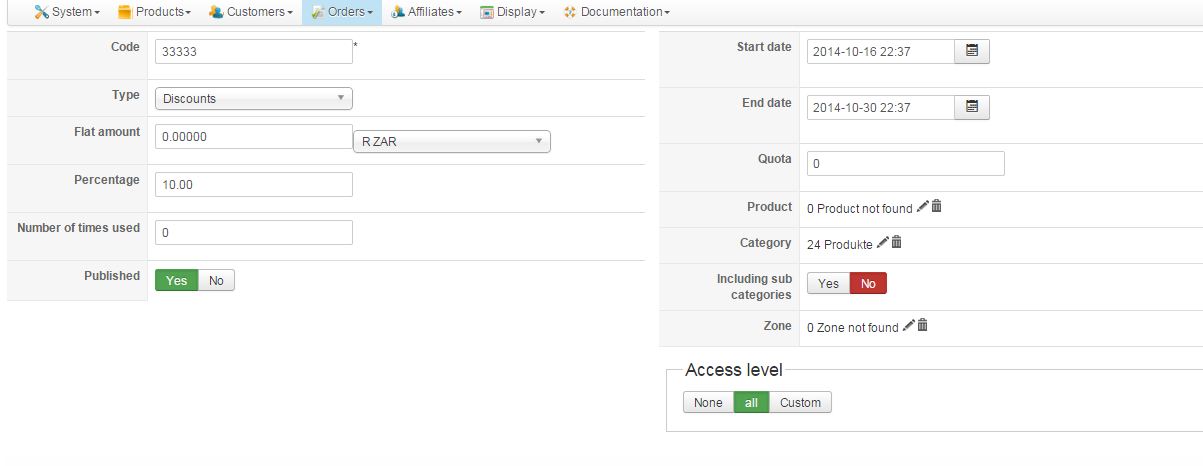 The discount item is linked to my main category;
