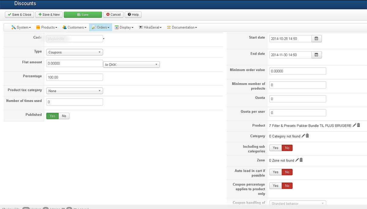 Reading the discount/coupon documentation will probably help you : www.hikashop.com/support/documentation/i...count-form.html#info
