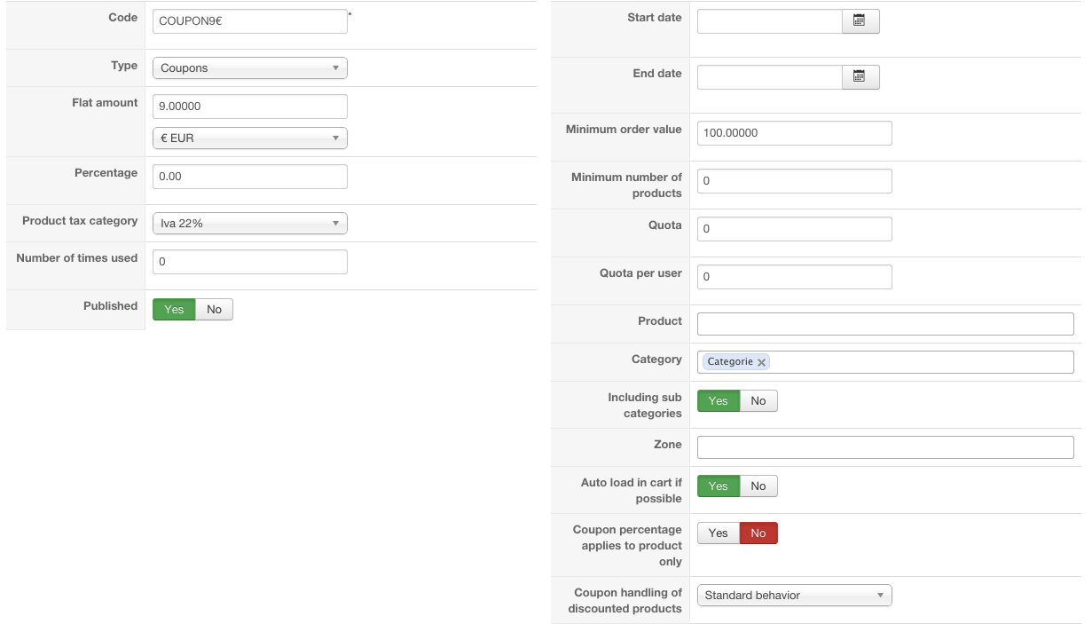 The coupon has Minimum order value= 100€ but it's applied also for inferiors amounts.