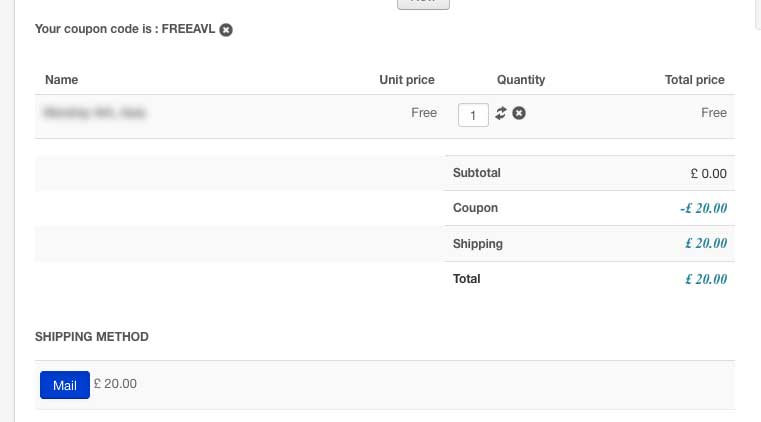 If the sum of the product prices + coupon is below 0, the total is brought back to 0 before the shipping is calculated and added to it.